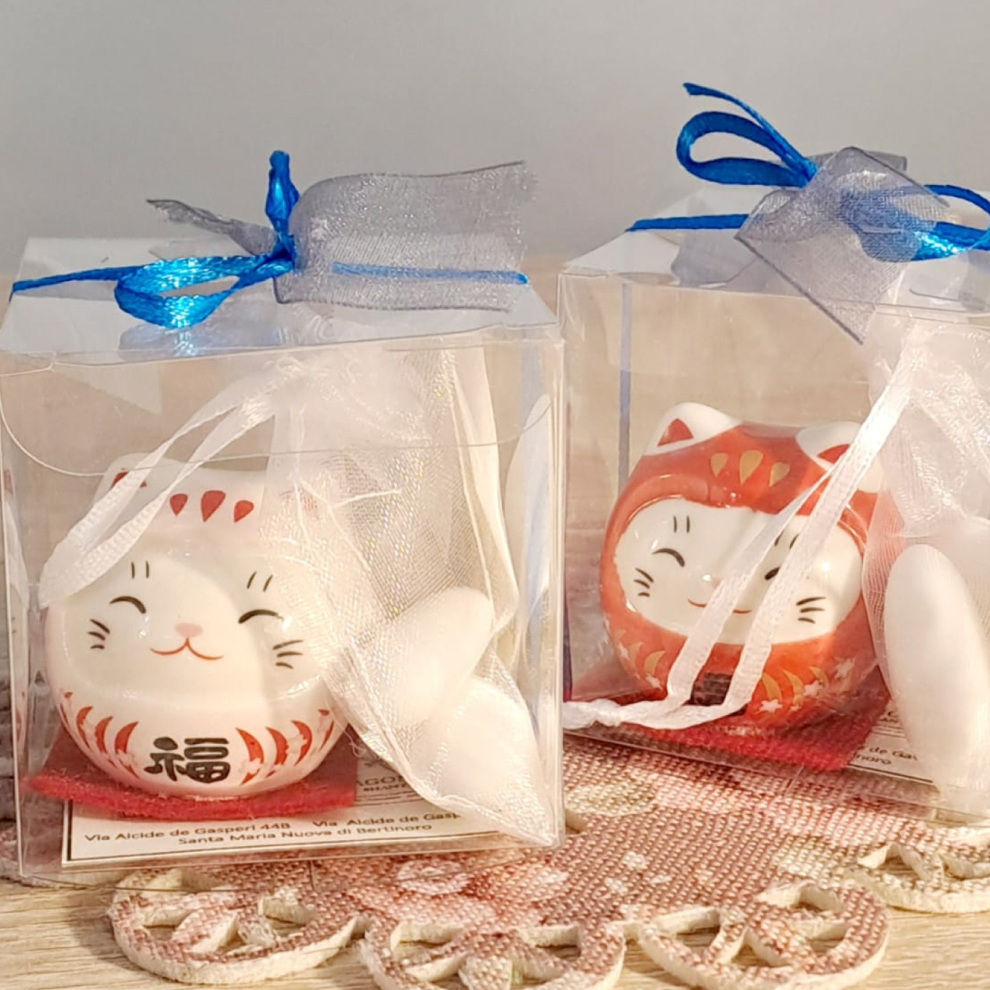 Una novità per il negozio, ma trovo che siano venute benissimo! Bomboniera con Gatto-DaruNeko in ceramica di buon augurio, made in Japan. Pensate assieme ai clienti e realizzate passo dopo passo secondo i loro gusti ed esigenze.